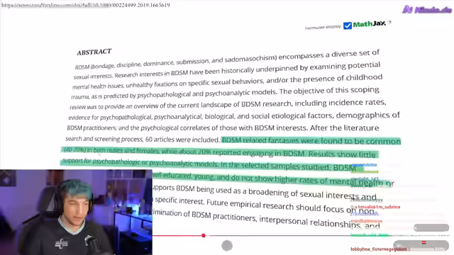 01:46:45Der Stream thematisiert die problematische Pathologisierung weiblicher Sexualität, insbesondere im Kontext von BDSM-Fantasien. Es wird kritisiert, dass Frauen, die sexuelle Wünsche äußern, die als unkonventionell gelten, als 'geistenskrank' oder 'nicht normal' abgestempelt werden. Diese Haltung wird als antifeministisch und als Rückschritt in eine Zeit bezeichnet, in der Frauen mit 'Hysterie' oder 'Nymphomanie' diagnostiziert wurden, um sie zu kontrollieren. Studien zeigen jedoch, dass BDSM-Fantasien weit verbreitet sind (40-70% der Bevölkerung) und BDSM-Praktizierende psychologisch oft sogar vorteilhafte Merkmale aufweisen, wie geringere Neurotizität, höhere Extraversion und ein besseres subjektives Wohlbefinden. Diese wissenschaftlichen Erkenntnisse stehen im krassen Widerspruch zu den in TikToks verbreiteten Meinungen, die weibliche Sexualität verurteilen, wenn sie nicht dem Mainstream entspricht. Es wird betont, dass die individuelle Sexualität nicht pauschal als abnormal abgetan werden sollte, sondern als vielfältiger Ausdruck menschlicher Wünsche zu akzeptieren ist.