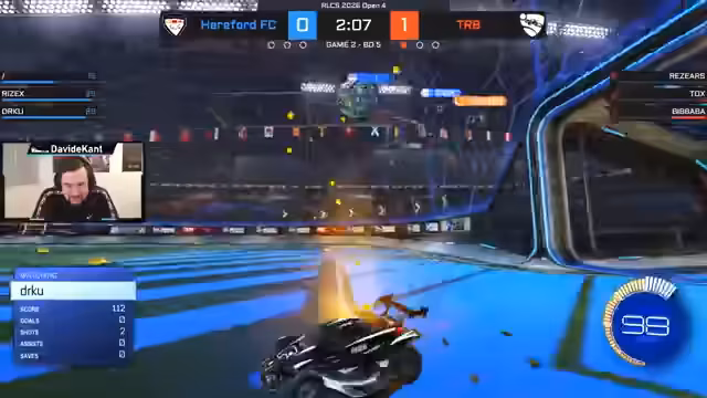 00:01:50Der Stream beginnt mit dem Kommentator David, der nach einer anstrengenden Woche, einschließlich der deutschen RLCS-Playoffs, als Ersatz für den abwesenden Rezius die Spiele kommentiert. Er stellt die RLCS-Struktur vor, die aus Splits, Turnieren und einer Weltmeisterschaft besteht, und erklärt, dass man sich aktuell in der Top 32 der europäischen Region befindet. Es ist die Swiss-Stage, in der Rezius' neues Team – bestehend aus Tox, Rezius und dem Nachwuchstalent Bibaba – gegen den Hereford FC antritt.