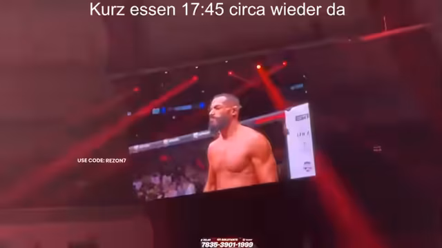 01:38:00Nach dem offiziellen Kampfende verweilen der Streamer und seine Freunde noch in der Halle. Es kommt zu Provokationen von Gegenseiten, was zu einer angespannten Situation führt. Die Gruppe beschließt, das Ereignis mit einem gemeinsamen Essen ausklingen zu lassen und tauscht sich über den Kampfausgang und die finanziellen Aspekte professioneller Kämpfe aus. Der Streamer wertet das Ganze als extrem beeindruckende und ehrliche Erfahrung.