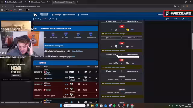 02:29:27Der Streamer widmet sich intensiv den anstehenden RLCS-Spielen und gibt seine Einschätzungen ab. Er prognostiziert einen Sieg für Virtus.Pro gegen Falcons, obwohl 80% der Community auf die Falcons setzen und die Zwillinge Ravaz und Kilias im Team hebt. Für die Spiele gibt er Strategien an: Ones durch Flip Resets, Two's durch Spanish Kickoffs und Bumps. Die Zuschauer werden ermutigt, bei der Channel Points-Wette auf Virtus.Pro zu setzen, da er trotz des schlechten Starts nach Timeouts ein Comeback erwartet. Die anspruchsvolle Todesgruppe mit Vitality, SSG, Twisted Mines und Karmikop wird ebenfalls diskutiert.