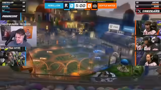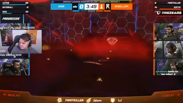 03:28:59Der Stream konzentriert sich ausschließlich auf die Rocket-League-Championship-Series (RLCS). Aufgrund der langen Spieldauer des vorherigen Spiels von MIBR gegen Shopify gibt es im Programm keinerlei Pausen. Die Übertragung wechselt direkt vom Ende des vorherigen Spiels zum Comic-Con-Event und wird durchgehend mit RLCS-Inhalten gefüllt, was eine hohe Konzentration erfordert. Ein technisches Problem führt dazu, dass der Sound des aktuellen Spiels nicht einwandfrei übertragen wird, was die Kommentarsituation erschwert.