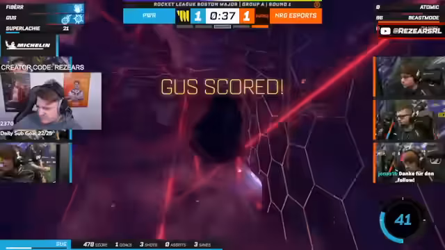 00:41:31Das erste Spiel der RLCS zwischen NRG und Power beginnt. Während des Spiels wird das neue Overlay kritisch diskutiert. Der Streamer beobachtet das Spiel intensiv und analysiert die Leistung der Teams. Er stellt fest, dass Energy stark schießt, aber auch Power gefährlich werden kann. Er gibt Prediction-Wetten an und sieht Power im Verlustspiel, während Energy das erste Game für sich entscheidet.