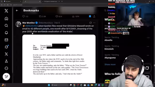 05:52:09Aus der Perspektive eines Opfers werden die Schandtaten von Epstein und seiner Partnerin Ghislaine Maxwell beschrieben. Es geht um psychische Manipulation, Bestechung und das Normieren der brutalen Handlungen durch ihr Umfeld. Der Streamer deutet an, dass Epstein Informationen als Machtmittel nutzte und Promis erpresste. Gleichzeitig gibt es Andeutungen über eine mögliche Unterstützung der israelischen Militärs durch Epstein und die Veröffentlichung einer kranken E-Mail über die Auslöschung der Araber.