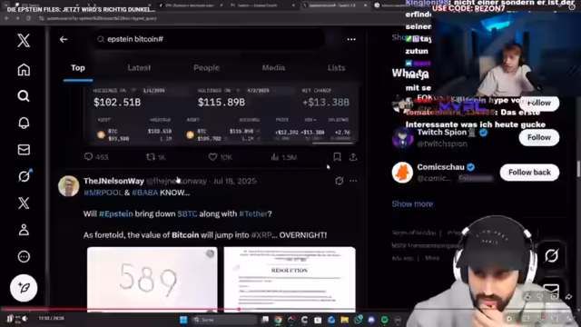 05:58:04Es werden die offiziellen Reaktionen von Promis und Politikern analysiert. Bill Clinton fordert eine vollständige Aktenfreigabe und weist die Anschuldigungen zurück, während Trump angeblich versucht, die Aussage von Ghislaine Maxwell zu verzögern, aus Angst vor Enthüllungen. Parallel dazu findet eine heftige Diskussion über Bitcoin statt, wobei der Streamer Verschwörungstheorien zurückweist, Epstein sei Satoshi Nakamoto, und erklärt, dass Kryptomärkte aus vielen Gründen fallen, nicht aufgrund von Epstein.