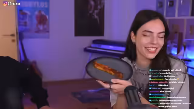 01:25:58Lisa übernimmt den Stream und präsentiert ihren Instagram-Feed, wobei sie von Rezo dazu gezwungen wird, ihre Likes und Interessen preiszugeben. Es beginnt mit Garten-Content und Hühnern, gefolgt von einem Reel über Schlagzeuger. Rezo kommentiert Lisas Vorliebe für Alexander Skarsgård und ein Halloween-Inspo-Reel. Ein weiteres Reel zeigt einen Mann, der Bonbons in eine Krone bekommt, was Lisa als 'misplaced' empfindet. Es folgt ein Reel mit einem 'Draußen rumlaufen-Vibe'. Lisa und Rezo teilen sich ein kleines Glas Rotwein, während sie den Feed weiter durchgehen. Es werden diverse Reels kommentiert, darunter eines, in dem ein Mann ein Ei im Mund hat, und ein Hinge-Profil eines älteren Mannes. Lisa zeigt Reels über Susanne Daubner und Kit Connor. Rezo äußert Bedenken über Lisas Instagram-Aktivitäten und schlägt eine Intervention vor. Lisa verteidigt ihren Content und zeigt weitere Reels, darunter einen über Tennisbücher und einen 'Nunzi Set' für 'educational purposes only'. Zum Schluss werden Lisas aktuelle Top 3 Männer genannt: Youngblood, Pedro Pascal und Aragorn.