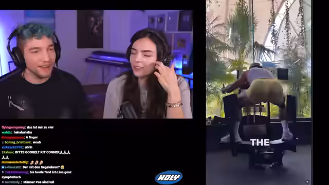 02:22:55Der Streamer kommentiert Lisas Locke. Es wird über den gestrigen Lauf von Lisa gesprochen, bei dem sie sechs Kilometer gejoggt ist und nun Muskelkater hat. Sie wollte eigentlich mit dem ganzen Office laufen, aber viele sind krank geworden. Am Ende haben aber alle gefilmt. Sie zeigt ein Video vom Ende des Laufs, bei dem sie und andere ins Wasser gehen. Der Streamer hat währenddessen Leute im Golfkater gepiesackt. Er verspricht, im nächsten Stream ein Highlight-Video davon zu zeigen. Der Streamer kommentiert einen Mann im Video und fragt, ob Lisa lieber diesen oder einen anderen Mann hätte. Er macht Andeutungen über dessen Körperbau und fragt den Chat, ob ihnen bewusst ist, dass bei solchen Aufnahmen vorher aufgepumpt wird. Lisa betont, dass sie seine Haare und Tattoos mag. Der Streamer fragt, ob sie weitermachen wollen oder es noch mal gucken möchte. Er kommentiert, dass es auch obenrum Kommentare gab und dass alle, die die Apps haben, vorher noch ein paar Push-Ups machen.