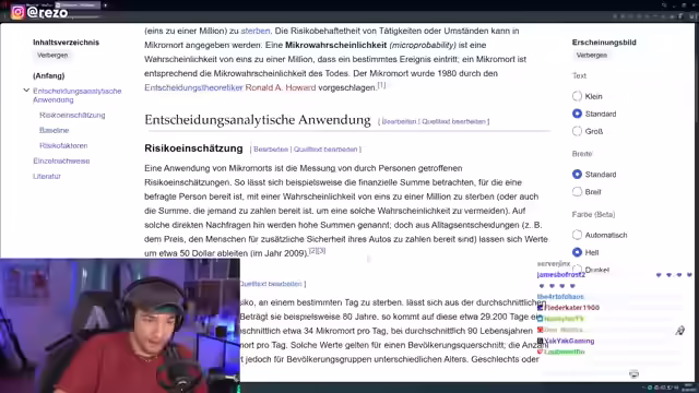 00:00:31Der Stream beginnt mit der Ankündigung, dass Rezo mit dem Streaming beginnen möchte und Ratschläge von verschiedenen Kontakten einholt. Digi rät ihm ab, da er glaubt, Rezo könne nicht mehrere Plattformen gleichzeitig bedienen und warnt vor den ungeschminkten Einblicken, die ein Live-Stream bietet. Max empfiehlt ironisch, um 4:30 Uhr ohne Facecam und Mikrofon zu streamen. Pro Rezo äußert Zweifel an Rezos Live-Qualitäten im Vergleich zu seinen bearbeiteten Videos. Sascha findet Rezos Twitch-Ambitionen unangenehm und schlägt YouNow als Alternative vor. Maluna reagiert ablehnend und blockiert Rezo, da er trotz Kontaktverbots ihre Nummer herausgefunden hat. Kaya rät ihm ebenfalls ab und empfiehlt YouTube, TikTok oder Facebook-Gaming. Stay empfiehlt Blutopfer für Twitch Prime. Mehrere Personen äußern Bedenken bezüglich Rezos 'Boomer-Humors' auf Twitch. Insgesamt überwiegen die negativen Rückmeldungen und Warnungen vor einem Scheitern auf der Plattform.