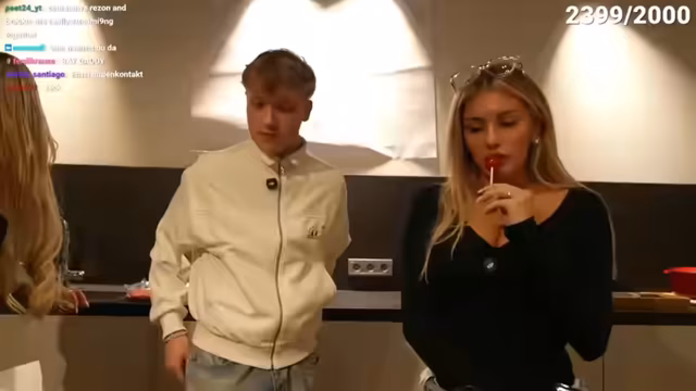 01:29:28Bei den Challenges wird das Spiel zunehderst persönlicher und frecher. Ein Vorschlag aus dem Chat lautet, Breckie solle Sammy küssen, was sie spontan ablehnt, da sie gerade erst kennengelernt haben und sich unwohl fühlen. Rezon hingegen erklärt, dass er schon mit Julian geküsst hat und auch bereit wäre, Sammy zu küssen, was zu einem disziplinierten Versuch führt. Parallel wird über das schwere Thema Choking als erotische Vorliebe gesprochen, was beide als 'heiß' ansehen.