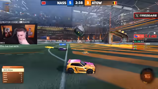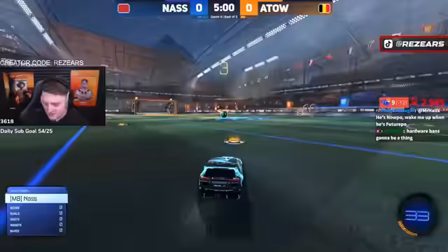 02:16:08Das Spiel zwischen Nass und Atoe ist von hohem Tempo und entscheidenden Fehlern geprägt. Nachdem Atoe einen Ball zum Netz dribbelte, ging er in Panikmodus, um Nass an einem einfachen Tor zu hindern, und konnte eine Chance von Nass parieren. Trotz eines Fehlers von Nass, der einen Pass mit leerem Boost versuchte, konnte Atoe nicht abschließen, da der Ball zu perfekt platziert war. Nach einer Panikreaktion von Nass konnte er den Ball jedoch eintüten und das Spiel auf 6-6 ausgleichen.