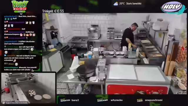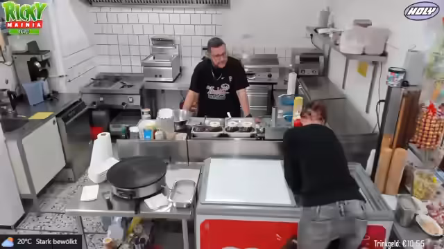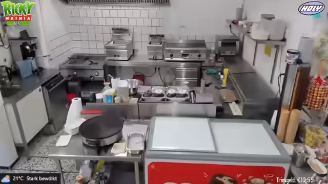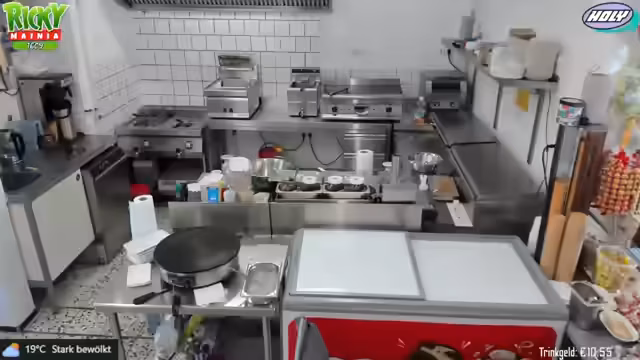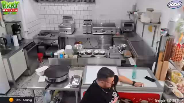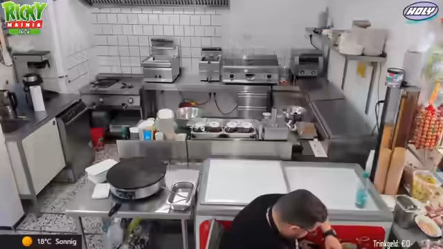 00:04:57Der Stream beginnt mit einem guten Morgen an das Publikum. Zunächst werden gewerbliche Aufgaben erledigt, darunter der wöchentliche Fettwechsel in den Fritteusen und die Reinigung der Geräte. Der Streamer erklärt, dass in der Selbstständigkeit kaum freie Tage existieren und er gestern erst spät mit Verwaltungsaufgaben für den 24/7-Kanal fertig wurde. Heute Nachmittag ist der Besuch von Sherry geplant, da das Wetter besser sein soll als am Sonntag.