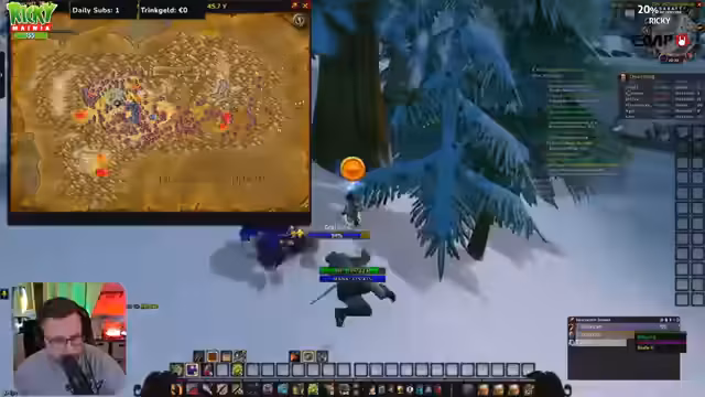 01:41:55Ein wichtiges Ereignis ist die vollständige Erkundung der 'Höhle des Frostmahns'. Die Gruppe muss mehrere Mobs töten, darunter auch Elites wie die Lepra-Gnomonen. Es ergeben sich Taktikfragen, wie man Mobs aggro und wie man spezielle Items wie 'Getriebeneile' sammelt kann. Der Streamer stellt fest, dass die Höhle schnell und effektiv durchlaufen wurde und dass sie nun den 'Kopfjäger des Frostmahns' als nächstes Ziel ins Visier nehmen.