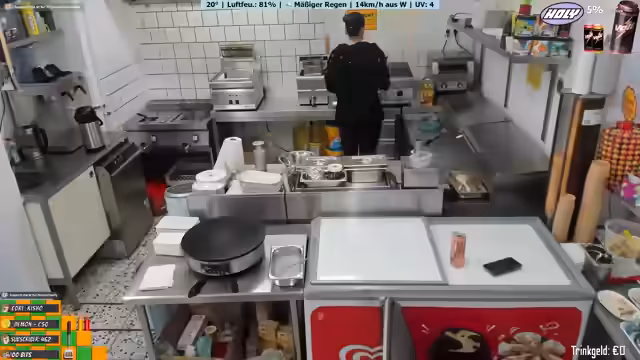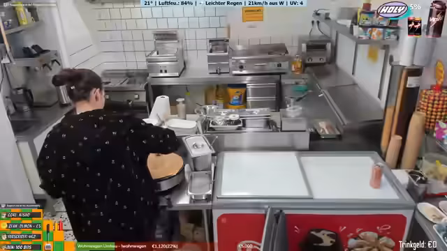 04:32:05Der Streamer spricht über den Personalplan, an dem Tag ist er bis zum Feierabend alleine im Imbiss, was eine lange, achtstündige Schicht bedeutet. Das Wetter wird als sehr schlecht beschrieben, was zu weniger Kunden und damit geringeren Einnahmen führt. Er erwähnt auch, dass diese Saison schlechter ist als die vorherige. Trotz allem versucht er, positiv zu bleiben und die Zeit zu überbrücken.