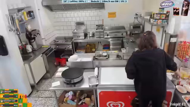 05:43:51Der Streamer gibt bekannt, dass er heute nicht allein ist, sondern von Lotti-Foxi, einer Angestellten, unterstützt wird. Lotti übernimmt den Stream für einen Moment, begrüßt die Zuschauer und erklärt, dass Ricky auf einer Hochzeit ist. Sie interagiert mit dem Chat und spricht über ihre Aufgaben im Imbiss.