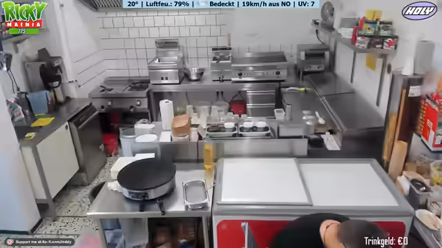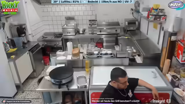 08:00:09Am Ende des Streams widmet sich der Streamer den alltäglichen Problemen in seinem Betrieb. Er erwähnt die Müdigkeit und den Stress, der aus dem ständigen Sauberhalten und der Bewältigung kleinerer Unannehmlichkeiten entsteht, wie das Auslaufen von Fett oder das kurzzeitige Ausfallen der Crepe-Stube. Er weist darauf hin, dass das Freibad um 18 Uhr schließt, er aber bis 20 Uhr arbeiten muss, um alle Kunden zu bedienen und auszuräumen, was zu einem langen und anstrengenden Arbeitstag führt.