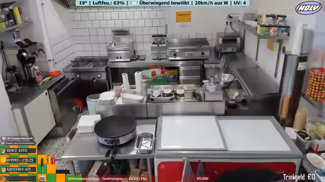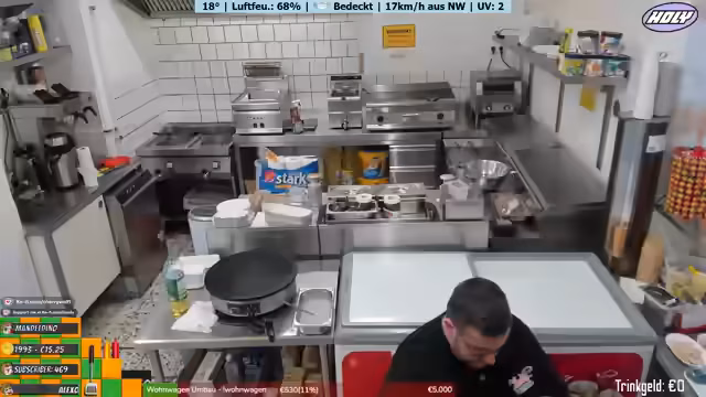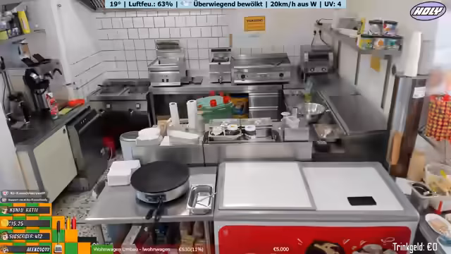 09:08:20Der Streamer plant bereits für mögliche Auftritte auf der Gamescom. Die hohen Hotelpreise für acht Nächte belaufen sich auf 18.000 Euro, weshalb ein Wohnwagen als günstigere Alternative in Betracht gezogen wird. Der Stand, der für die Polaris erfolgreich war, könnte eventuell auf der Gamescom eingesetzt werden, dies erfordert jedoch die Zustimmung des Caterings der Kölner Messe. Die Preise für die Snacks, wie Zuckerschnecken und Bananen-Nutella-Crepes, sollen eventuell für die kommende Saison erhöht werden.