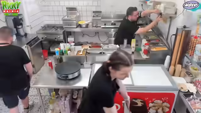 00:42:08Die Abläufe im Imbiss und der Service für die Kunden werden beleuchtet. Es gibt Diskussionen über die Organisation des Verkaufs, die Platzierung der Kasse und die Handhabung von speziellen Kundenwünschen wie laktosefreie Produkte. Die Streamer zeigen, wie sie mit den Herausforderungen des Betriebs umgehen, wie z.B. das schnelle Nachfüllen von Getränken und das Bewältigen großer Bestellungen. Der Betrieb mit verschiedenen Kamera-Perspektiven wird ebenfalls angesprochen.