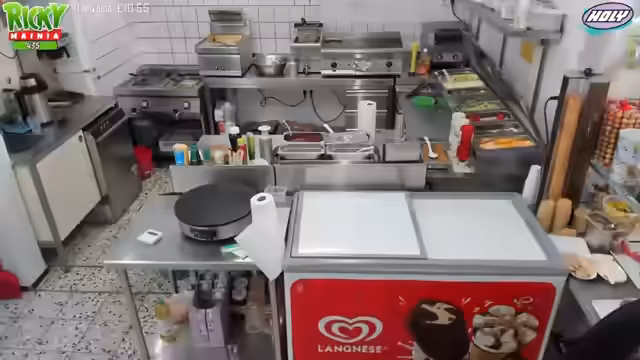 01:42:27Zu Beginn des Streams wird die Einrichtung des Freibad Imbisses für die neue Saison vorbereitet. Es werden die Grillgeräte kontrolliert, Pommes Nuggets erwähnt und die zweigeteilte Grillfläche als neuartige Verbesserung hervorgehoben. Der Streamer stellt die verschiedenen Bereiche wie Eis, Süßigkeiten, Slush, die Kassen und sich selbst als 'dicker dummer Mann' vor und gibt einen ersten Überblick über das Sortiment. Er erkundet den Raum und stellt fest, dass alles bis auf den Kaffee vorbereitet ist, und verspricht die baldige Nachlieferung von Kaffeesahne.