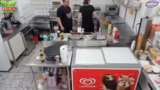 00:48:54Der Stream wird mehrfach durch technische Pannen unterbrochen, die das Team jedoch mit Humor meistert. Ein Problem ist ein defekter Kaffeeautomaten, der einen Kaffeegeschmack verursacht. Auch bei den Eismaschinen treten Schwierigkeiten auf. Die Streamer demonstrieren ihre Problemlösungskompetenz, indem sie Ersatzgeräte nutzen und ihre Frustration über die Technik mit dem teils chaotischen Bauzustand Hamburgs vergleichen.