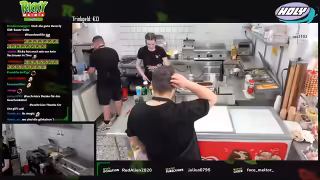 06:26:40Gegen Ende des Streams wird der Betrieb allmählich ruhiger. Das Team nutzt die Zeit, um die Stationen aufzuräumen, die Spülmaschine zu entleeren und Vorbereitungen für den nächsten Tag zu treffen. Der Streamer gibt einen Ausblick auf zukünftige Events, wie einen Auftritt auf einem Weihnachtsmarkt. Der Tag endet mit einem gelockten und kollegialen Gespräch, bei dem die Erschöpfung nach einem anstrengenden Tag, aber auch die Freude über den erfolgreichen Start in die neue Season, spürbar ist.
