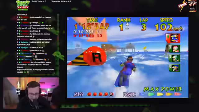 00:12:34Der Stream beginnt mit technischen Herausforderungen. Ein neues Kabel wird erwartet und der Streamer bemängelt, dass der YouTube-Chat zunächst nicht sichtbar ist, was auf Verbindungsprobleme hindeutet. Trotzdem ist der Streamer zuversichtlich und erwähnt, dass nebenbei auch auf YouTube gestreamt wird. Die Zeit bis zum Start des geplanten Rennspiels Wave Race 64 gegen Wollo um 13 Uhr wird mit Smalltalk und gelegentlichen privaten Themen, wie einer neuen Wetterwarnung und einer anstehenden Lieferung, überbrückt. Der Streamer betont seine gute Laune und seine Freude an der Interaktion mit dem Chat.