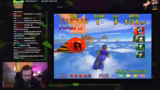 03:07:56Der Streamer beginnt ein Brainstorming über mögliche Gaming-Challenges. Sein nächstes großes Ziel ist es, Sonic Adventure 2 auf verschiedenen Versionen durchzuspielen und dabei möglichst wenig den A-Knopf zu drücken. Er überlegt auch, Challenges wie das Durchspielen von Mario 64 ohne Sammlerstern oder ohne einen bestimmten Charakter zu streamen. Er erkennt an, dass solche Challenges für das Publikum spannend sind, auch wenn er selbst den Gedanken daran zunächst als belastend empfindet und sich ständig Gedanken über das Scheitern macht.