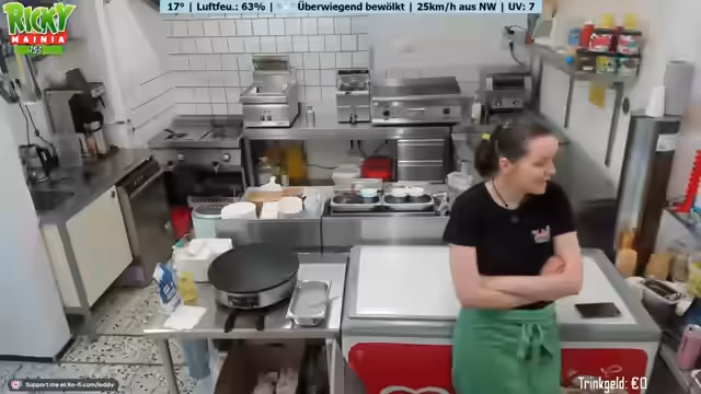 00:00:35Der Stream beginnt mit der Begrüßung des Chats und einem Rückblick auf den Tag. Es werden die üblichen Vorbereitungen für den Betrieb des Imbisses beschrieben, wie das Anschalten der Slush-Maschine und das Zubereiten des Kaffees. Der Betreiber erwähnt, dass das Wetter mit nur 16 Grad nicht ideal ist, aber er sich auf einen ruhigen Tag einstellt. Zudem wird der Plan für das Wochenende angesprochen, inklusive einer Veranstaltung am Samstag Abend, die bis Mitternacht gehen wird.
