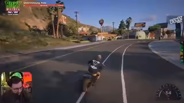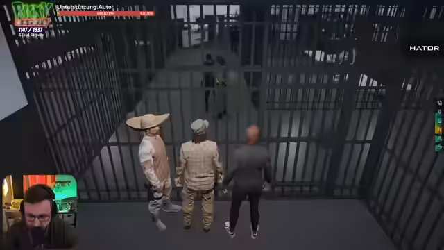 01:44:20Die Teilnehmer berichten von einer Geiselnahme am La Familia, die angeblich dazu führte, dass ein Event abgesagt wurde. Sie betonen, ehrliche Geiselnehmer zu sein und das Event nicht kaputt machen zu wollen. Deswegen wollten sie mit einer Geisel abfahren, was eskalierte, als diese flüchtete. Daraufhin fuhren sie ins Café Nora und nahmen eine neue Geisel. Es wird ein geplanter Befreiungsversuch für eine Person namens Andrew angekündigt, wobei die Staatsanwaltschaft bereits vor Ort sein soll. Ein Wettbewerb im Chat startet, um vorherzusagen, ob die Befreiung gelingt und ob die Teilnehmer ins Gefängnis oder ins Krankenhaus kommen.