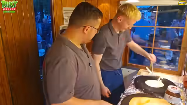 00:00:00Um 00:00 Uhr beginnt der Stream, der den Verkauf von Crêpes und anderen Süßigkeiten thematisiert. Der Moderator bietet verschiedene Füllungen an, darunter Nutella, Kinderschokolade, Kirschmarmelade und Apfelmus. Neben Crêpes können auch Teller mit Käse oder Bananen-Nutella-Kombinationen gekauft werden. Die Preise für einzelne Crêpes variieren zwischen 4,50 und 5,00 Euro, während Teller mit Bananen und Nutella 9,00 Euro kosten.