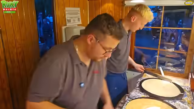 Der Crêpe-Stand in Brunsbüttel verzeichnet einen Ansturm. Kunden bestellen Crêpes mit Nutella, Banane und Käse. Der Bezahlvorgang wird abgewickelt, während technische Probleme mit dem Akku des Handys auftreten. Es wird versucht, den Arbeitsprozess zu optimieren und die Effizienz zu steigern. Der sinkende Akkustand bereitet Sorgen, da der Stream sonst vorzeitig enden könnte.