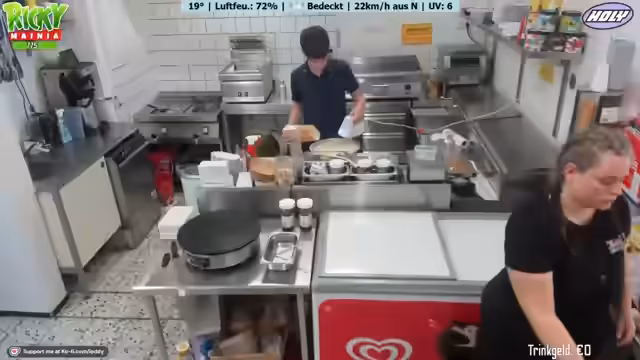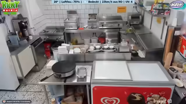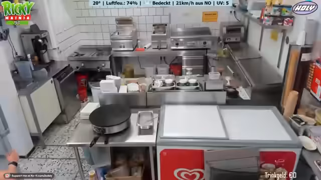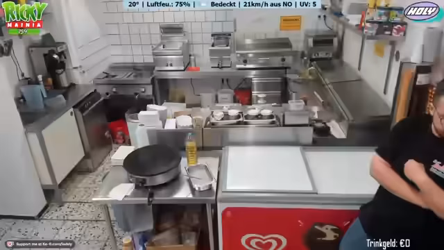 00:15:01Der Stream startet mit einigen lockeren Einheiten und humorvollen Anmerkungen des Streamers. Es geht um das Freibad-Imbiss und die anstehenden Vorbereitungen. Marie, eine Mitarbeiterin, wird vorgestellt, die letztes Jahr auch schon dabei war. Das Wetter ist unbeständig und hat ursprünglich auf 25 Grad Sonne prognostiziert, was sich aber als falsch herausgestellt hat. Die Stimmung ist trotz allem gut und es wird die Eröffnung des Imbisses für 10 Uhr angekündigt.