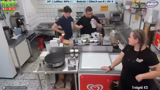 01:52:44Der Stream gibt einen Einblick in die Organisation und den Betrieb eines Freibad-Imbisses. Trotz einiger Herausforderungen wie dem unbeständigen Wetter und der neuen Regelung zur Ab- und Wiedereintrittsgebühren läuft alles planmäßig ab. Streamer, Marie und das Team sind zuversichtlich, dass der Tag erfolgreich verlaufen wird. Für den Abend wird mit einem großen Andrang gerechnet, besonders wenn das Wetter mitspielt.