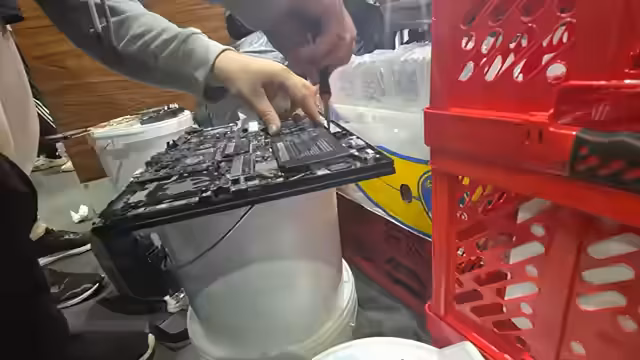 00:00:00Der Stream beginnt mit einem technischen Desaster: Ein Laptop ist mit Teig überflutet worden, der in die Grafikkarte und auf die Platine gelaufen ist. Der Streamer berichtet, dass der Lüfter zerrissen ist und Teig in sensible Bereiche eingedrungen ist. Es wird sofort versucht, den Laptop zu retten, indem man ihn auseinandernimmt und die Komponenten zu reinigen. Die Situation wird als "unprofessionell, aber hauptsache es funktioniert" beschrieben, was einen chaotischen und stressigen Auftakt darstellt.