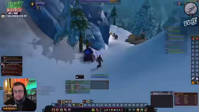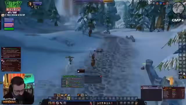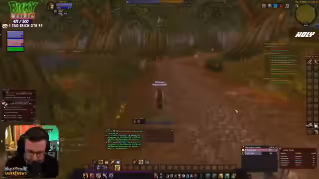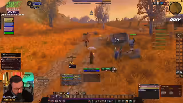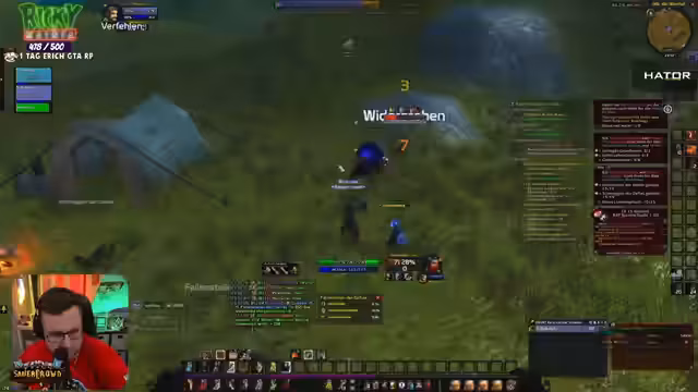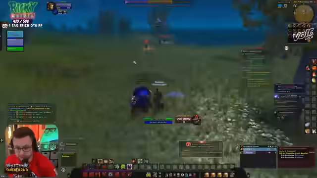 07:40:40Im Spiel World of Warcraft werden aktive Quests in Westfall absolviert, wobei gezielt nach spezifischen Gegenständen wie Leber, Hafer und Tüchern gesucht wird. Der Streamer koordiniert sich mit der Community, um gemeinsam Questziele zu erfüllen, bemerkt jedoch Schwierigkeiten mit dem Loot-Management und vollständigen Inventarslots. Es gibt auch Probleme mit dem Addon „Questie“, das die Zielaufgabe spammt und die Übersicht stört, was zu Frustration führt. Dennoch wird das Niveau-System schrittweise vorangetrieben.