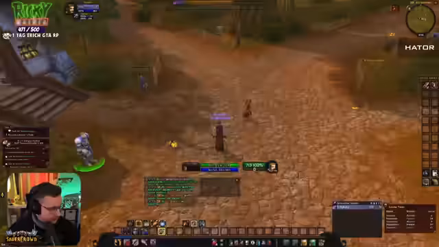 05:15:06Nach einer kurzen Unterbrechung wird das Gameplay in WoW Hardcore fortgesetzt. Der Fokus liegt darauf, in die Hülle einzudringen und Quests zu erledigen, wie die Instant-Dequest und das Haustier 'Remnant-Blitzer'. Es gibt technische Probleme und Diskussionen über das Teilen von Erfahrungspunkten in der Gruppe, während der Streamer weiterhin durch die Spielwelt navigiert.