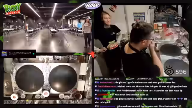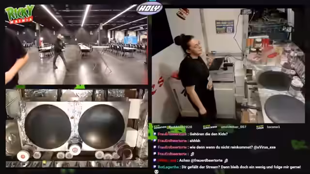 06:14:30Ricky präsentierte sich als Crêpes-Bäcker, der den Teig selbst herstellt und stolz auf seine Kreationen ist. Es wurde eine frühere Freibad-Aktion erwähnt, bei der er Pommes und andere Snacks angeboten hatte. Es ergab sich eine Kooperation mit einem Waffelstand-Betreiber namens Krogmann, der von einer Bäckerfamilie stammt. Ricky half Krogmann beim Waffelbacken und umgekehrt. Der Chat wurde gefragt, ob er lieber den Waffelstand oder die Crêpes-Zubereitung sehen möchte. Es wurde auch erwähnt, dass der Crêpes-Stand ein Highlight der GamescomLAN sein soll und dass man sich freut, wenn die Leute die Crêpes mögen.