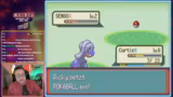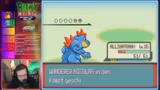 02:39:49Der Streamer trifft auf eine Zonik, eine Nasse-Challenge, bei der die Pokémon der beiden Spieler miteinander verbunden sind. Stirbt ein Starter-Pokémon, stirbt auch das des Partners. Beim Kampf gegen ein starkes Pokémon wird er von einem Elektroangriff getroffen und durch Verbrennung geschwächt. Mit Donphan greift er an, doch der Gegner ist immun. Er muss sich zurückziehen und heilen, wobei er die strenge Regel von nur einem Trank pro Kampf beachten muss. Der Kampf ist ein Kampf ums Überleben, da er unter Zeitdruck und geringer Lebenskraft leidet.