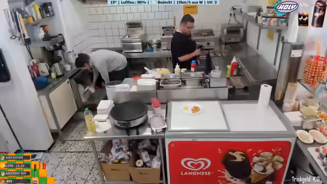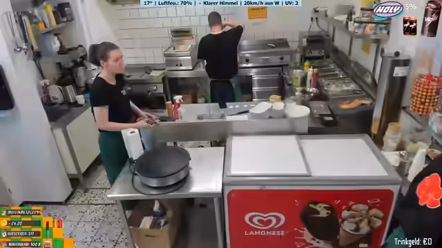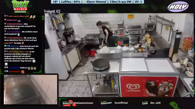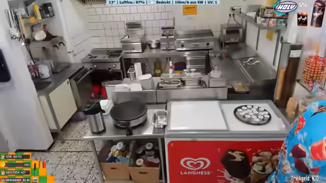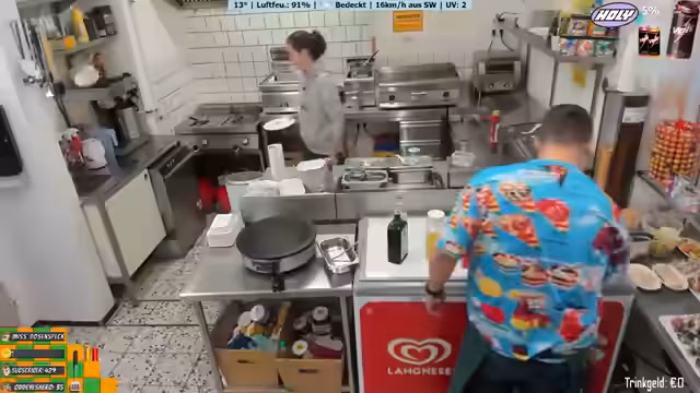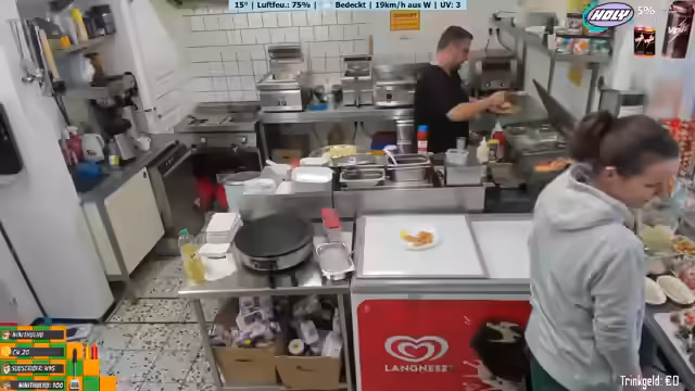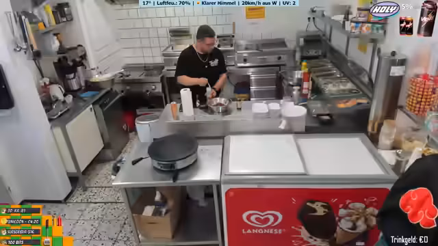 03:47:45Der Streamer arbeitet an der Zubereitung von Pommes und Currywurst und bemerkt, dass frische Pommes besser schmecken als TK-Pommes. Er unterhält sich mit den Gästen und ist manchmal ungeduldig mit der Arbeitsweise seiner Mitarbeiter. Er erwähnt, dass sie bis 18 Uhr normalerweise geöffnet sind, aber heute bis 20 Uhr putzen werden. Der Streamer zeigt sich offen gegenüber den Zuschauern und teilt persönliche Gedanken und Herausforderungen mit.