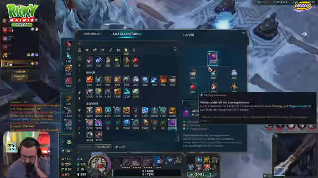 Es wurde eine Gaming-Session mit League of Legends absolviert. Dabei standen mäßige Spiel-Leistungen und die persönliche Situation im Vordergrund. Nach einigen Runden wechselte das Thema zur geplanten Teilnahme an einer Convention und zu privaten Neuigkeiten.