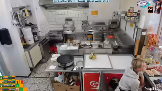 06:58:18Es wird erwähnt, dass der Kreppstand umgebaut wird und jetzt nackig ist. Fotos davon sind auf Instagram und Discord zu finden. Es wird überlegt, ob Burger und Wurst für den nächsten Tag bestellt werden müssen. Es wird erwähnt, dass der Finger beim Hantieren mit dem Kreppchen eingeklemmt wurde. Nächste Woche Sonntag ist der letzte Tag. Es wird erwähnt, dass Azi die gesamte Elektrik im Wohnwagen neu macht und auch am Kreppstand arbeitet, um ihn bis zur Polaris fertigzustellen. Es wird überlegt, ob Marco Zeit hat, bei den Arbeiten zu helfen. Es wird erwähnt, dass der Kreppstand jetzt leichter ist und Azi das Holz hasst. Es wird erklärt, wie man sich für Veranstaltungen bewirbt. Es wird über ein Mikrofonproblem gesprochen. Es wird erwähnt, dass das Frühstück nicht so gut besucht ist wie im letzten Jahr. Es wird überlegt, ob das am Wetter liegt. Es wird ein Burger und ein Getränk für Azi bestellt. Es wird erwähnt, dass das Mikrofon wieder in Ordnung ist, weil die Person näher dran ist. Es wird überlegt, was ein Kunde haben möchte. Es wird erwähnt, dass Riki fertig und talentiert ist.