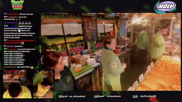 00:02:37Der Stream beginnt mit technischen Vorbereitungen und ersten Interaktionen. Der Streamer befindet sich am Stand und richtet seine Kamera und Mikrofon ein. Er erwähnt das laute Fußballstadion in der Nähe und die daraus resultierenden Internetprobleme, die zu einem möglichen Providerwechsel führen könnten. Es werden die ersten Bestellungen entgegengenommen und die Auswahl an Pommes, Gemüse und Saucen vorgestellt, wobei der Preis für eine Standardportion bei 9 Euro liegt.