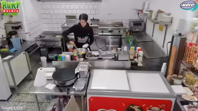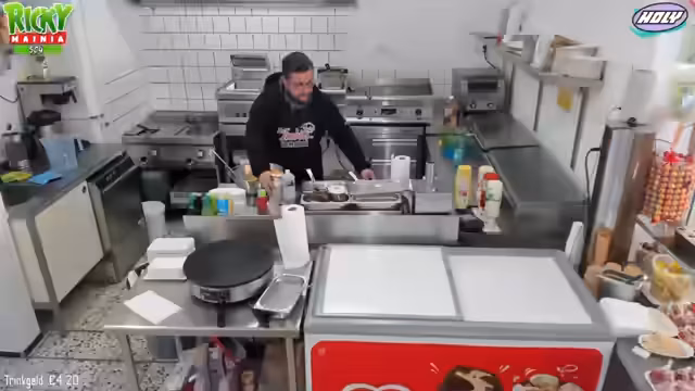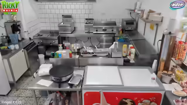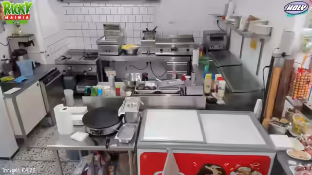 00:18:01Der Fokus liegt auf der Vorbereitung der Verkaufsgeräte. Beim Slush-Gerät wird versucht, das defekte Teil zu isolieren und mit Vaseline einzufetten, um die Laufeigenschaften zu verbessern. Parallel dazu wird der Teig für die Crepes angerührt. Dies geschieht nach einem spezifischen Rezept mit Milch, Eiern und Mehl. Wichtig ist hierbei, die Zutaten langsam unterrühren, um Klumpenbildung zu vermeiden. Die Zubereitung wird sorgfältig demonstriert.