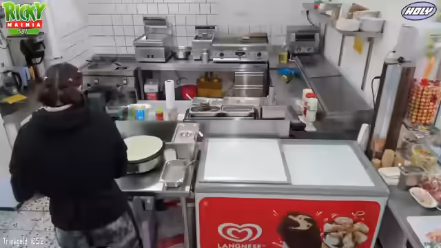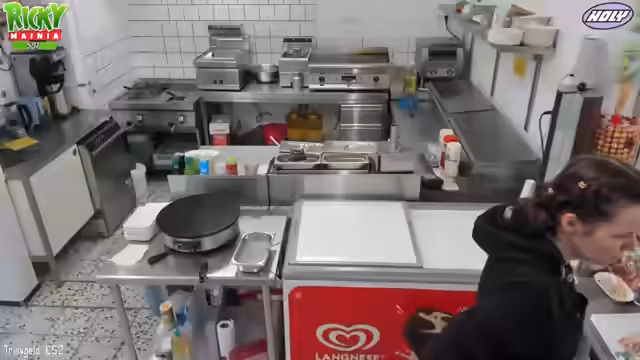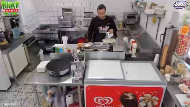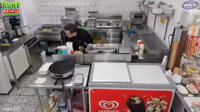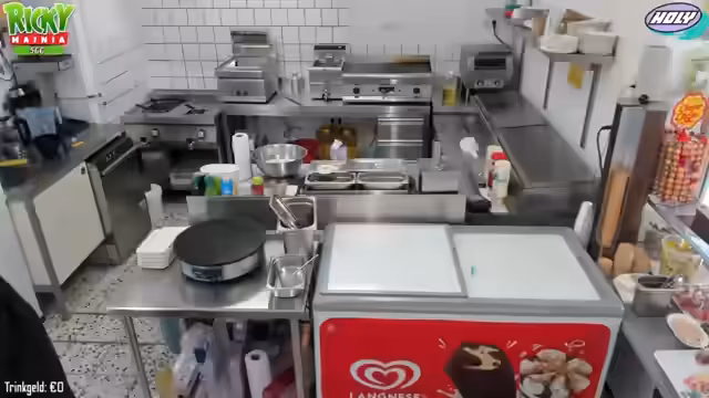 00:06:03Der Stream beginnt mit Begrüßungen der Zuschauer. Ricky ist erkältet und berichtet, dass er sich aber langsam besser fühlt. Er erwähnt, dass er aufgrund seiner Erkrankung nur verkürzte Schichten arbeitet und Medicamente wie Gripstat einnimmt. Der Fokus liegt auf dem Vorbereiten des Crêpe-Teigs und des Kaffees für den bevorstehenden Betrieb. Zusätzlich plant Ricky, Einkäufe zu erledigen, darunter Pommes-Picker und Zutaten für Chili-Cheese-Brötchen, und besucht einen Friseurtermin um 13 Uhr.