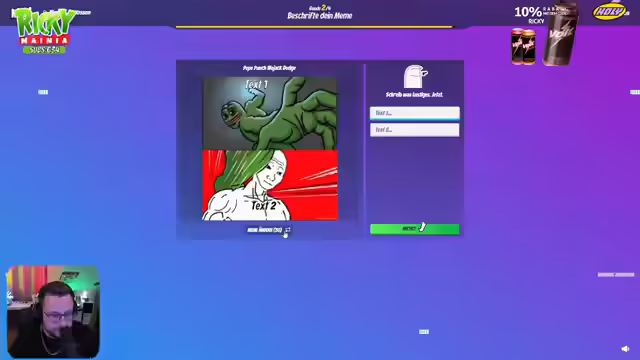 02:47:21Es wird ein Make-a-Meme-Spiel gespielt. Es wird darum gebeten, die Soundeffekte auszuschalten, da sie stören. Es wird diskutiert, warum es nur fünf Meme-Optionen gibt. Es wird ein neuer Raum für das Spiel erstellt und alle werden eingeladen, beizutreten. Es wird erklärt, wie das Spiel funktioniert und wie man Memes bewertet. Es wird über die Meme-Buddy-Funktion gesprochen, die zusätzliche Punkte bringt. Es wird über die Qualität der eigenen Memes gewitzelt. Es wird diskutiert, ob man die Ersteller der Memes erkennen kann. Es wird überlegt, ob man die Memes speichern und in Discord teilen soll. Es wird überlegt, wie man mehr Punkte bekommen kann. Es wird überlegt, wer nicht dabei ist. Es wird überlegt, wer ein Spion ist. Es wird überlegt, wer Doris ist. Es wird überlegt, wer Dirtel gekloppt hat.