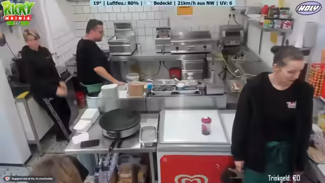02:29:05Der Stream bietet Einblicke in das Team und die Arbeitsdynamik. Streamer Lotti und der Gast Chad arbeiten Hand in Hand und entwickeln eine freundschaftliche Beziehung. Es wird offenbart, dass Lotti private Umstände hatte und der Streamer ihr daher eine Wohnung und einen Job vermittelt hat. Das Team besteht aus drei festangestellten Mitarbeitern und wird zur Stoßzeit durch Aushilfen unterstützt. Die Personalknappheit bedeutet, dass die Aufgaben klar verteilt sind: einer ist für den Eintrittskassenbereich, zwei in der Küche und einer in der Hütte zuständig, um einen reibungslosen Ablauf zu gewährleisten.
