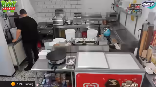00:03:00Der Stream beginnt mit dem Eintreffen von Benu-Back bei 84 Zuschauern. Der Moderator blickt auf den Tag voraus, der für Freibad-Aktionen geplant ist und gutes Wetter bei 22 Grad und Bewölkung verspricht. Nach einer kurzen Baustellenverzögerung berichtet er von anhaltenden, sehr starken Magenproblemen, die ihm zusetzen. Um die angespannte Situation zu verbessern, entscheidet er, dass Slush-Eis hergestellt werden muss, um das leere Inventar vorne zu füllen.
