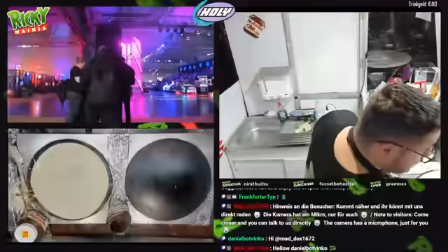 00:07:21Der Stream beginnt mit der Ankunft des Streamers und seines Teams auf der Messe in Halle 3. Es wird erwähnt, dass der Verkauf bereits läuft und vor allem 2-Euro-Stücke benötigt werden. Nach technischen Anpassungen und Umplatzierung des Lautsprechers, um die Musik hörbar zu machen, werden die ersten Bestellungen für Crêpes entgegengenommen. Die Standbetreiber sind optimistisch,尽管 der erste Tag traditionell etwas ruhiger ist.