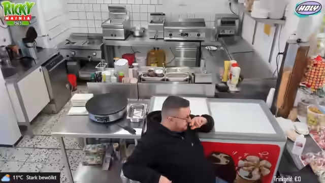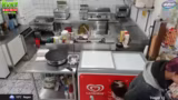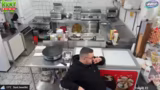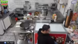 06:09:45Da das Wetter schlecht ist, gibt es kaum Gäste und die Mitarbeiter haben wenig zu tun. Dennoch werden Vorbereitungen getroffen, wie das Einfetten der Grillplatte und das Schmutzigmachen der Küche für das Mittagessen. Es wird über Snacks wie Lollis und Chupa Chups gesprochen, die sich verflüchtigen, was aber humorvoll gesehen wird.