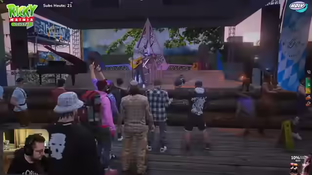 03:03:39Es wird ein wunderschönen guten Abend gewünscht und eine Singline-Song-Veranstaltung im Oktoberfest-Stil angekündigt. Einige Musiker haben sich etwas Besonderes für das Oktoberfest, Party oder Ballermann ausgedacht. Die Veranstaltung findet in Zusammenarbeit mit Titan, VR und Bloody Ocean statt, die seit vier Jahren Partner sind. Es wird eine Spendenaktion angekündigt, bei der man pro 10 Dollar Spende einen Franz-Taler erhält, die man am Ende gegen etwas eintauschen kann. Der erste Musiker wird als Entertainer und Rampensau vorgestellt, der das Publikum zum Mitsingen animieren soll. Es wird erwähnt, dass die Leute sich heute das Konzert anhören sollen.