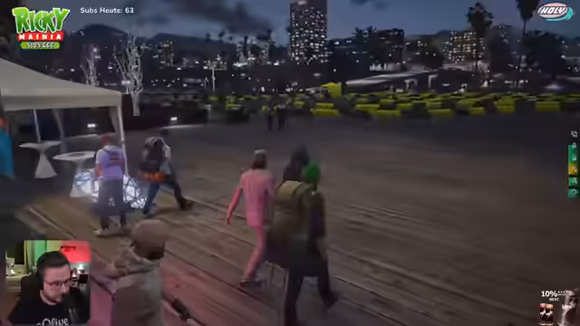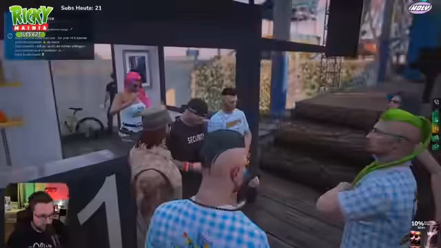 00:12:43Es wird über in-game-Aktivitäten wie das Spiel 'hoch oder tief' gesprochen, bei dem der Streamer und andere Spieler gewinnen. Gespräche über Go-Kart fahren und Anschaffungen von Lederhosen und T-Shirts finden statt. Die Szene ist geprägt von lockerem Umgangston, Späßen und dem Austausch von in-game-Gegenständen wie Brillen und Kleidung.