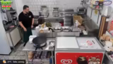 01:45:16Zu Beginn des Stream-Abschnitts steht die reibungslose Bedienung von Kunden im Mittelpunkt. Es werden Bestellungen wie Kaffee, Apfelschorle und Pommes entgegengenommen und die Preise präzise benannt. Eine Mitarbeiterin, Kira, ist in ihrer neuen Rolle am ersten Arbeitstag und der Streamer gibt ihr konstruktives Feedback zur Verbesserung der Arbeitsgeschwindigkeit und Genauigkeit. Besonders die Zubereitung von Crêpes wird mehrfach thematisiert, wobei die korrete Handhabung des Teigs und der Messer betont wird.